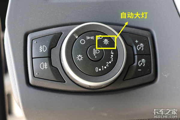 左侧的灯光开关部分还是很有亮点,在其中一个灯光指示图标上写了个大写字母A,这说明该车大灯为自动大灯。它会通过安装在单目摄像头旁边的传感器来感知环境亮度,自动开启、关闭大灯。