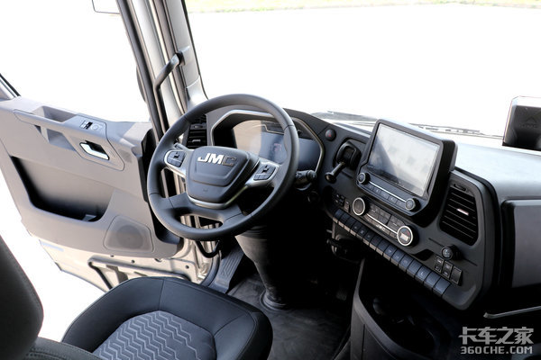 方向盘为目前江铃重汽家族的最新设计风格,上面集成了多功能按键以及定速巡航开关等功能,甚至连全液晶仪表的操纵也在方向盘上。