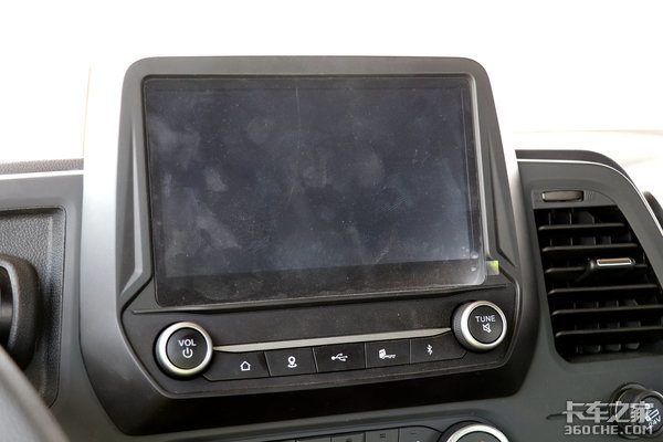 中控台部分被一块8英寸液晶显示屏所占据,这块大屏从造型上来看像是一只憨态可掬的“小青蛙”在随时等待着你的差遣。大屏集成了车联网系统、车载WiFi、货车导航、多媒体娱乐等功能。