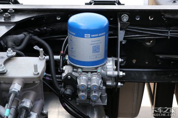 空气处理单元部分,江铃威龙HV5使用了国际大厂克诺尔的空气干燥罐(蓝罐)有了它的加持,咱们行车上路也能多一分保障。在这也给大家提个醒,克诺尔蓝罐多为原厂配套使用,卡友们后期更换时需注意。