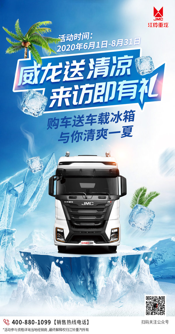 在开始介绍车辆之前,江铃重汽还为每位卡友都准备了一份消夏好礼。在这热到与太阳肩并肩的夏天,购车即送40L大容积车载冰箱一台!