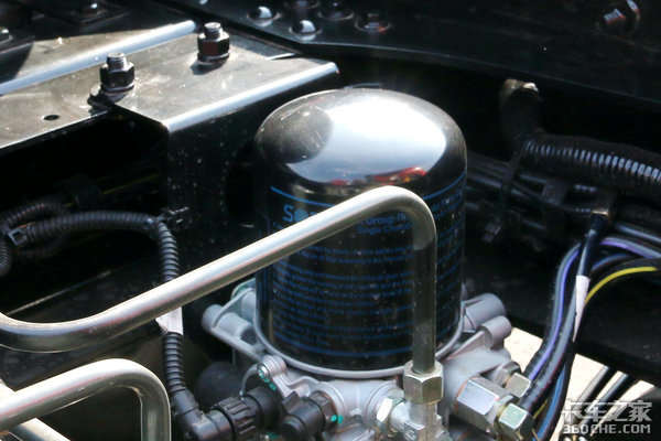在底盘上悍V2.0港拖版很好的诠释了什么是“该省得省该花得花”,在底盘前方能够看到国产大厂瑞立的空气干燥罐,选用瑞立干燥罐既能确保空气处理品质,又能降低采购成本,是降本增效的良好体现。