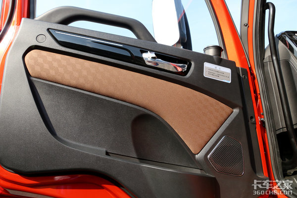说完了大变样的外观,这台悍V2.0港拖版的内饰也同样是重点,打开车门首先能够看车门的内饰衬板使用了更为时尚的设计风格,咖啡色软包材质配合上黑色搪塑工艺,非常讨喜。