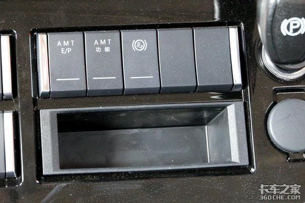 说完了选挡按键,咱们再来看看最右侧的两个按键一个是AMT E/P按键,另一个是AMT功能,AMT E/P这个功能是用来切换变速箱的换挡模式,E为Eco节能模式,P为Power动力模式,卡友们可根据自己的实际驾驶工况来选择这两种模式。