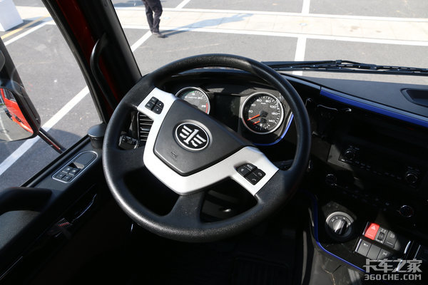 悍V2.0港拖版的方向盘借鉴使用了自家高端车型JH6的方向盘,并集成了多功能按键,能够实现操控多媒体系统的功能。实拍车型并未选装10英寸大屏,如果选装10英寸大屏,多功能按键还能支持接打电话、切换音乐等功能。