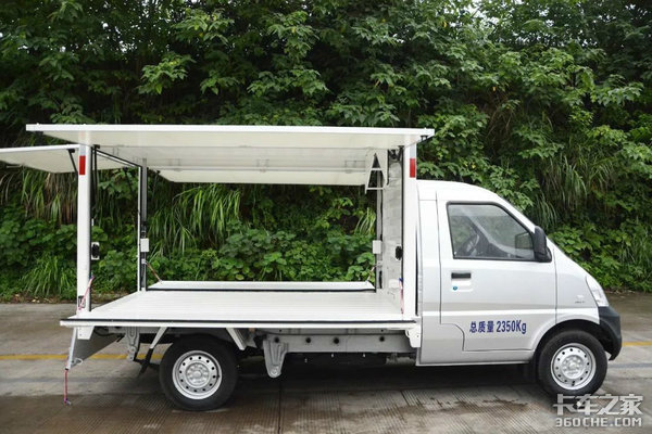 为了方便进入城市地下停车场,整车高度控制在2.26米。同时5300升的超大货厢容积,既可以多拉货同时也方便用户后期进行内部改装。而为了契合用户摆摊设点的需求,货厢采用了翼开模式,不仅方便货物搬运也能最大程度的对货品进行展示。