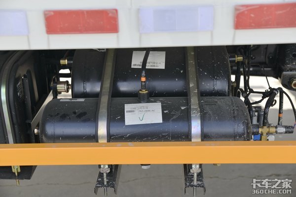 江铃凯运蓝鲸车型还增加了气罐储气量。我们连续多次地踩下制动踏板,人为的“频繁制动”,制造大量用气需求,发现车辆的气压依旧能够保持在0.85Mpa,刹车踏板不发硬,反馈灵敏,制动及时。