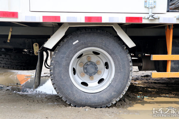 凯运蓝鲸车型装配的成山牌7.5R16 14层级子午线真空胎,单胎最大载荷系数为1.5吨。此时我们可以看到轮胎是处于受力中的,虽然有着轻微的变形,但却并不会影响车辆的行驶前进性能。对于轻卡车型,有很多卡友想要装配8.25型号的轮胎,但7.50R16型号的轮胎是完全可以满足轻卡日常使用需要的。