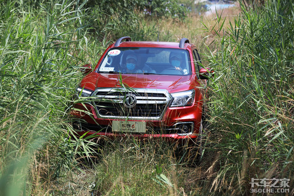有了前面驼峰的经验之后,在后面的越野项目当中,只要根据路面保证好车辆的运行轨迹,这台轻卡在过越野项目的时候,显得游刃有余。