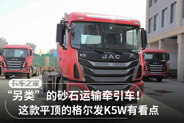 【卡车之家 原创】江淮格尔发K5有着很多种版本,有大家常见的物流版、大载版以及相对偏门一点的专用车型,而今天给大家介绍的这款6x4牵引车是专门针对中短途运输而打造的专用车型,这台K5W可以用来运送砂石料、煤炭矿物,亦或为城建而提供的上装底盘车。总体而言,这是款江淮专门为专用工况推出的高性价比车型。