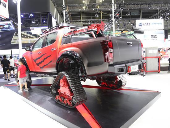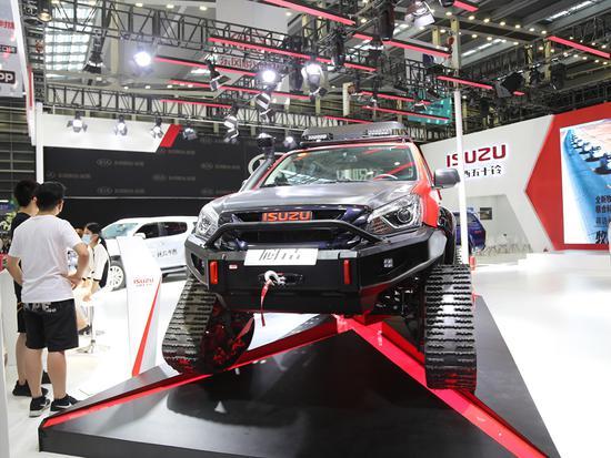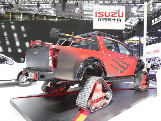 2020粤港澳大湾区车展如火如荼进行中,网易汽车前方报道团队拍摄到了五十铃履行车,这是一款基于D-MAX皮卡进行深度改装的履带车。