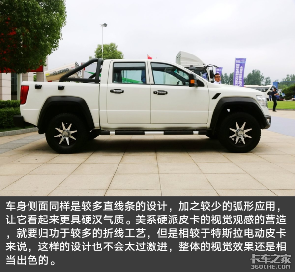 作为徐工集团旗下的车型,这台电动皮卡一以贯之的秉承着实用为主的设计理念,营造出较为粗犷的外形设计,颇有几分美式肌肉皮卡的感觉。这样的设计好不好看因人而异,但对于笔者而言,这样的设计有种异样的狂放之美。
