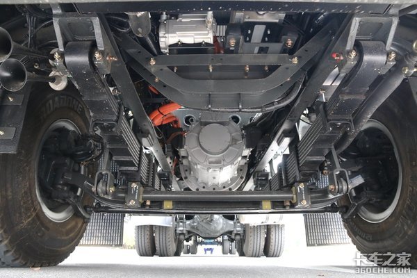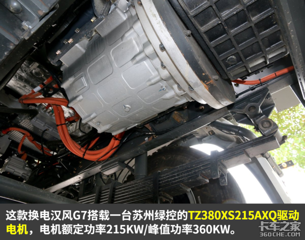 该电机的安置位置与常规燃油机的一致,仍然通过传动轴向驱动轴传输动力,而这次发布会上,徐工还展示了由轮毂电机驱动的重卡版本,最大特点就是将动力、传动和制动装置都整合到轮毂内,因此将底盘机械部分要比这款G7更简化。