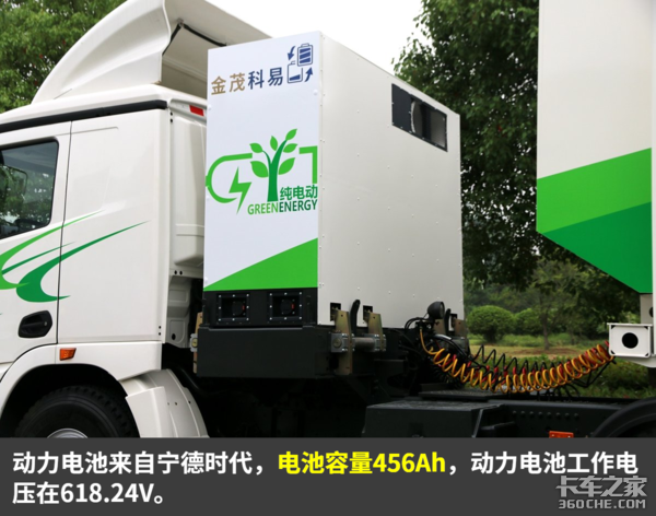 作为国内首台侧换电牵引车,根据厂家介绍,该电池总成具有两个明显的特点。首先,整个电池组采用整体侧式技术路线,对装载车辆的车宽、车高、包括电池上方的厚板,以及车顶部突出物、装载的碓高都没有特殊要求,所以电池总成对车型、场景适应性更好。