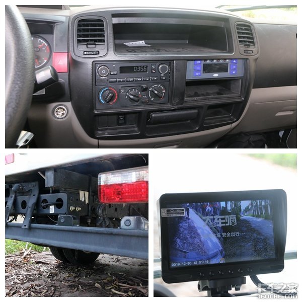 除了上述配置外,这台凯普特N300还有原厂空调、倒车雷达、MP3、电动车窗等配置。物流公司订车时还选装了倒车影像功能,支持前视、后视和行车记录,行车安全提升许多。