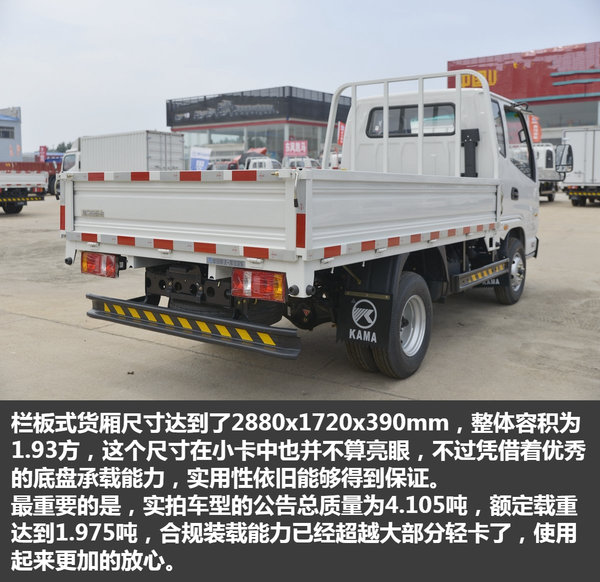 作为小卡车型,K3金运卡在装载能力上相较于轻卡而言依旧稍逊一筹,不过对于选择小卡的消费者而言,动力性及装载能力依旧是购车的主要诉求,在底盘配置上金运卡有怎样的表现。