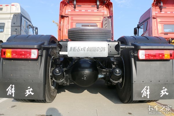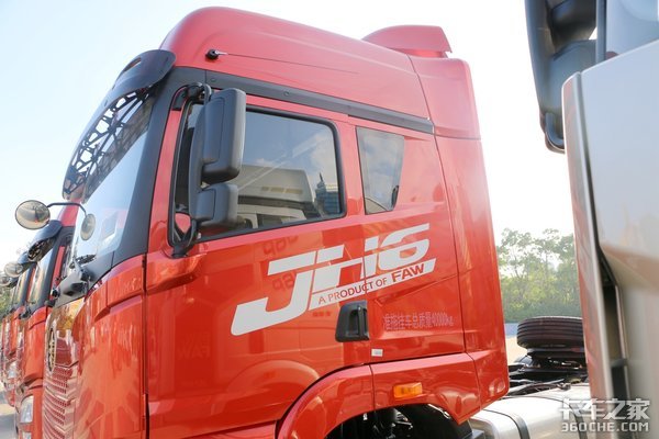 驾驶室侧面带有大写的JH6白色专属车标,LOGO造型新颖别致,充满活力。后方的一体式导流罩既美观有不缺失使用效果。