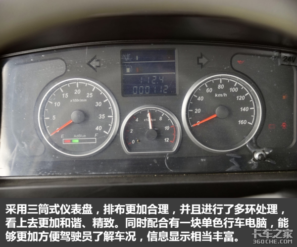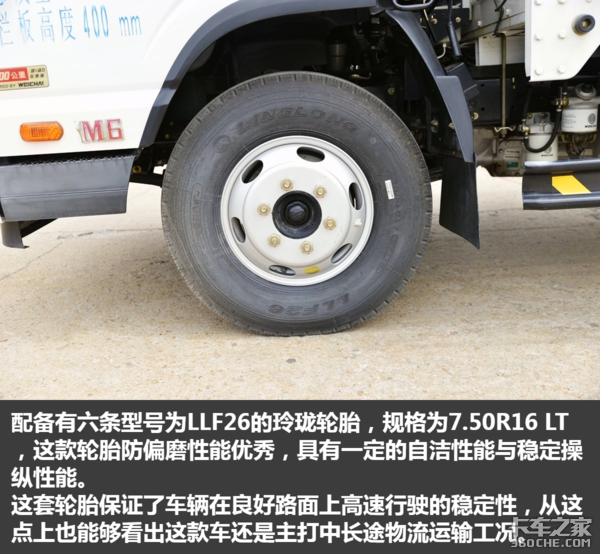根据发动机转速、变速箱最高挡速比、后桥速比和轮胎型号,通过卡车之家车速计算器得出,这款车在1400-2300转的经济转速区间下,经济车速范围是54.5-89.6km/h,其动力水准对于它所主打的中长途运输来说,还是绰绰有余的。