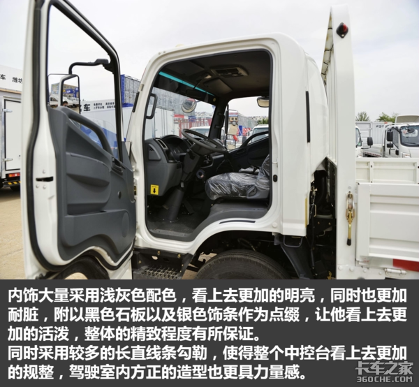 凯马凯捷M3采用宽度为2030mm的宽体驾驶室,内饰设计更加的年轻化与乘用化,更加贴合当前卡友对于舒适性的追求。