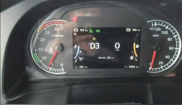 根据实拍图我们发现,车辆配备指针式+液晶搭配的仪表盘,同时车辆出厂可选装全液晶彩色仪表盘。