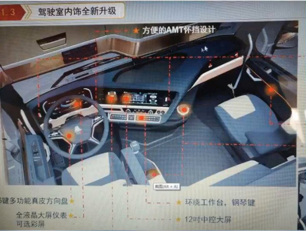 通过网上的爆料图片,我们可以看到重汽TH7车型将会采用平地板驾驶室,虽然中控台依然采用环抱式设计,但在整体设计风格方面与重汽T7H完全不同。并且方向盘样式也是新款,新车将会选装有12寸多媒体大屏和AMT怀挡,整车的科技化水平很高。