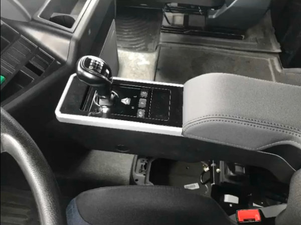 这款路试的重汽TH7实拍车搭载的是12挡变速箱,采用电子换挡机构,并且带有高低速切换、超车挡,猜测这款变速箱极有可能是一款AMT手自一体变速箱,可以像手动挡那样操作进行加减挡,可以自由干预挡位,电子挡把操作台可提供角度调节,方便乘员出入卧铺。