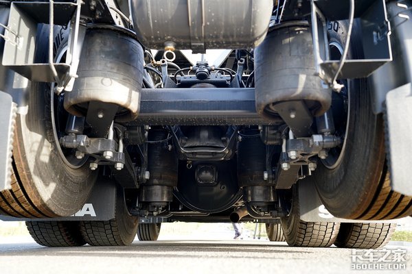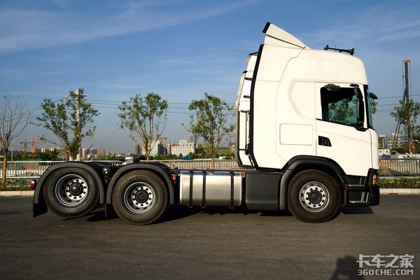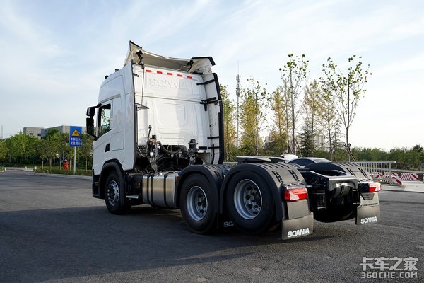 实拍的这款G500采用的是6x2R后提升的驱动形式,后桥采用的是斯堪尼亚单级减速桥,速比有2.71和2.92两种选择。