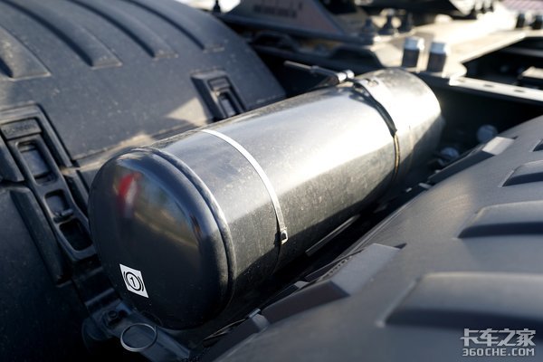 正是为了给油箱留足空间,斯堪尼亚的底盘设计非常紧凑,将空间利用到了极致。尿素箱设计在了底盘下方,加注口位于左侧油箱的后方;储气筒也分别布置在大梁尾部和传动轴右侧,就连后桥挡泥板中间分别设计了两个体积较小的储气筒,而且完全不会影响到挂车的摘接。