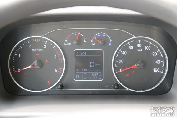 仪表盘采用双筒式指针仪表,左右两个标准圆形为转速表和时速表,中间上部分安置了气压表和燃油表,并把各类指示灯分散到左右圆盘内。中间则是一个小液晶显示屏,读数更直观,能够减少误操作风险。