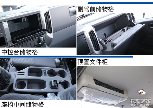 别看速运小钢炮只是一款轻卡车型,但其车内储物空间数量多达11处,分别布置在中控台、座椅中间水杯架和头顶顶置文件柜。此外厂家将座椅中间水杯架位置的手刹进行了后移,而这也拓宽了该位置的储物空间,并且该位置新增了两个5V 2.1A的USB充电口,两个人同时充电不打架。