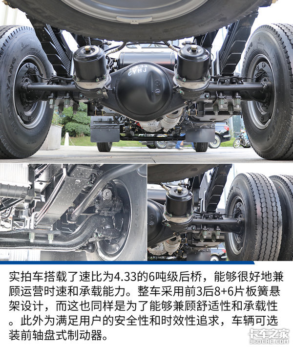 底盘点评:速运小钢炮车型的动力链匹配无愧于“小钢炮”之名,156马力匹配采埃孚6挡箱,主打的就是成熟可靠和耐用。无论是在动力链匹配上,还是在安全性、续航能力上,整套底盘配置都更加有利于让车辆从事城配、倒短和城际运输。