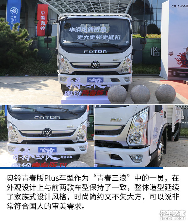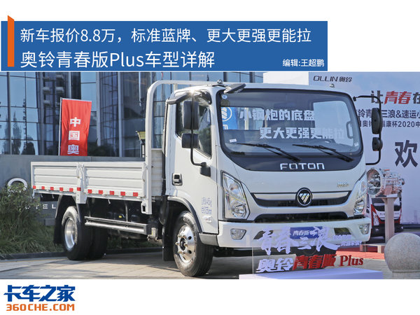 奥铃青春版Plus车型作为“青春三浪”中一员,亦是定位于年轻人的第一台车,这款车不仅拥有大空间、大承载,同时它的售价也是一大亮点,官方底盘指导价为8.8万元起,并且实际到店之后,售价可能还会进一步降低,不过这就需要看各地经销商的实际营销情况了。对于这款奥铃青春版Plus,各位卡友们觉得如何?欢迎在下方留言区评论转发。(文/图 王超鹏)