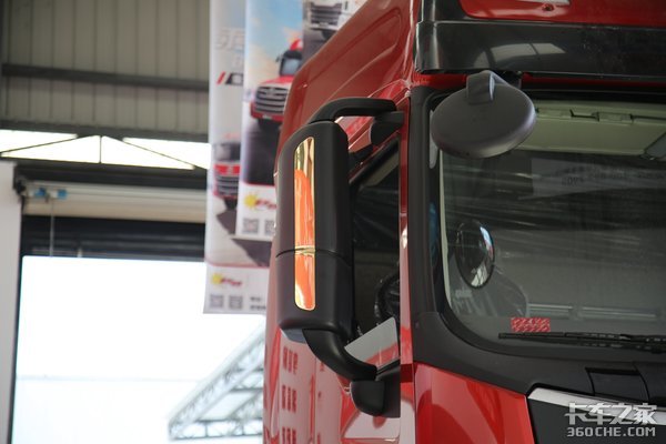 这款乘龙H7还有一个比较靓眼的地方就是金色的点缀,后视镜、前面罩、门把手上面都有一些金色的点缀,前面罩上面的logo、标识等等都是金色涂装。黑色的背景加上金色的点缀,看上去非常耀眼,再加上国内的用户都比较喜欢金色的,这一设计也比较讨喜。