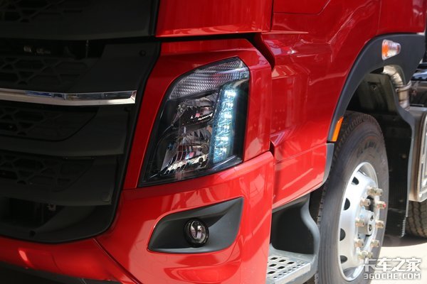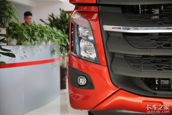 前大灯的设计也是比较讲究的,立体式的大灯有棱有角,而且棱角都是和整个驾驶室的线条融会贯通的,从保险杠一直延伸到驾驶室侧面工具箱那一块,让驾驶室侧面看起来比较有力量感,就像是一个肌肉外露的健身教练一样的。