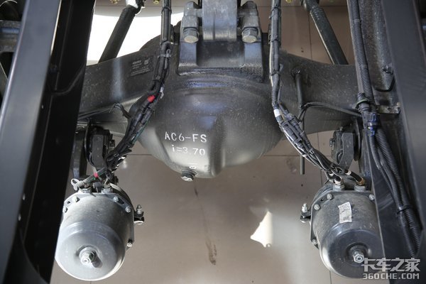 另外就是发动机、变速箱、车桥都配有长换油技术,可以提升换油周期,降低保养成本,提升出勤率。另外就是前后桥都装有康迈油润滑轮端,不仅保养方便,而且保养周期长达50万公里,相比传统的扒轮保养不仅提升了保养周期,还降低了保养难度和成本。