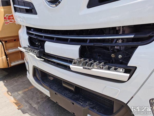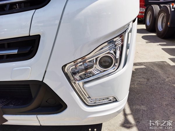 另外从驾驶室顶部进气口的布局来看,是和奔驰一样的设计,高位进气口可以改善进气效果,特别是行车的时候,这一设计可以保证发动机有充分的进气,以保证燃烧效果。前挡风玻璃上部的遮阳板采用了和车身同色涂装,并且和车身直接的衔接是比较流线型的,增加了美观度。