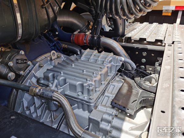 后桥是由汉德提供的单级减速桥,速比为2.846,纵观整个动力链,典型的大马力+直接挡+小速比。适用于高效物流运输,这也是目前进口车在国内最主要的一个市场,也是未来中国物流运输发展的一个主要方向。