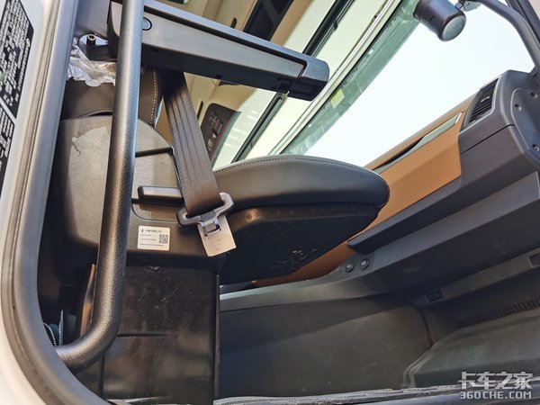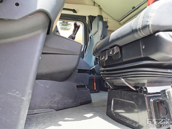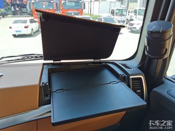 整个中控台做工也比较高端,所有的接缝也控制得比较好,相比陕汽之前的做工完全提升了不止一个等级。在副驾驶前面还设置了一个小桌板,在副驾驶座可以写点什么东西,或者是在副驾驶位置吃饭也比较方便。