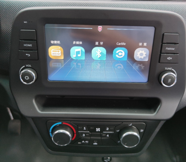 “高大上”的感受往往来自于对细节的把控,进入华晨鑫源金杯T2微卡的驾驶室,我们就可以看到经过精心设计的分层中控台、精致的装饰条、为有改装升级需求的用户保留的控制区域以及采用绒布全面覆盖的车内环境。作为同级车型中唯一支持升级原厂MP5、倒车影像、蓝牙互连等现代化科技配置的存在,华晨鑫源金杯T2系列微卡的内饰几乎是在向乘用车标准看齐。
