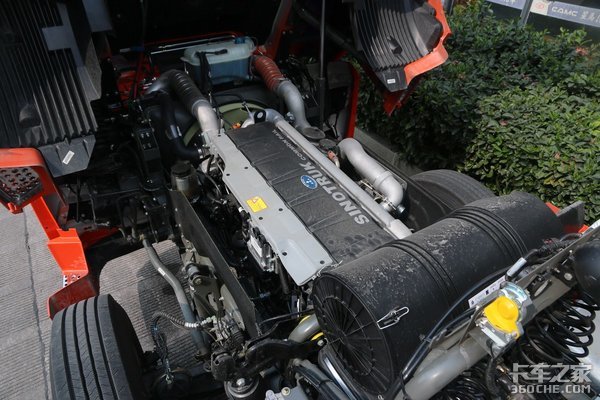 搭载中国重汽MC11.46-50发动机(目前汕德卡共匹配了重汽MC11与MC13系列发动机 ,马力段有400、440、460、480、540,充分满足了不同工况需求。),10.518升排量,最大功率460马力,峰值扭矩2200牛米,通过SCR后处理技术达到国五排放。