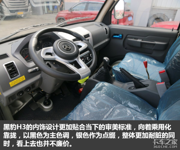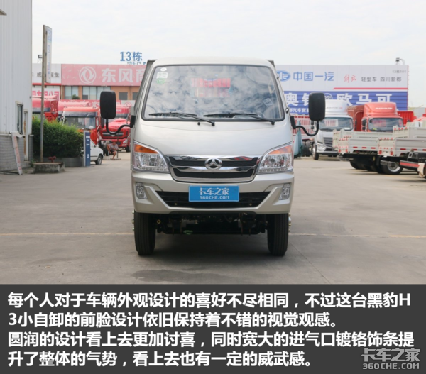 黑豹H3小自卸的外观设计相较于传统微卡,看上去更加沉稳大气,看上去更大,给人更好的视觉观感,更符合传统消费者的审美。
