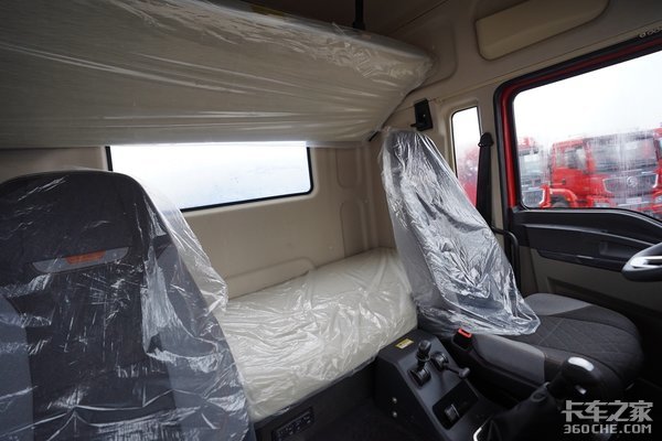 车内整体采用灰色+米白色的设计,和车辆外观的霸气红黑相比显得更加的温馨,对于卡车司机来说,驾驶室就是移动的家。灰色和米白这种安静的配色,让驾驶员在休息的时候也会更加放松。