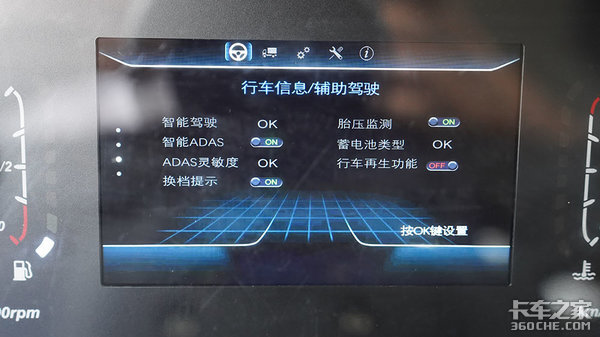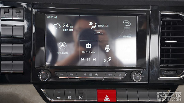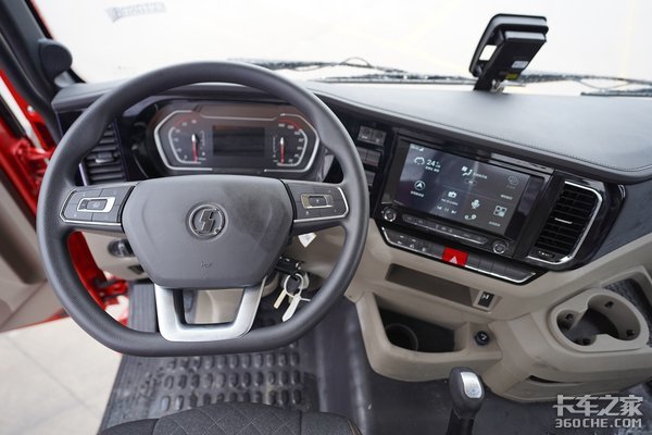 中控台配置的有10.5寸液晶仪表,集成设计了导航、路况播报、车载WIFI等智能互联功能,种种功能都非常实用。布局也比较简洁,卡友可以快速的找到其想要的功能,不至于出现手忙脚乱的误触误碰情况,也能更好地进行人机交互。