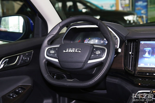 内饰采用了完全乘用化的风格设计,中控造型具有很强的豪华感,内饰的整体用料也足够高端,包含了皮革材质和木纹面板等,充分提升了车内的整体质感。