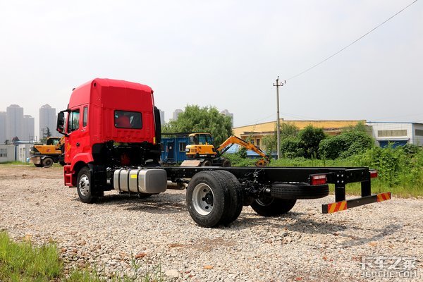 车架也采用了刚强度钢,前桥板簧单片厚度由此前的22mm升级为25mm,后桥板簧单片厚度由14/13mm升级为16/14mm,整车的承载力更好,而且车架悬架的可靠性也更高。