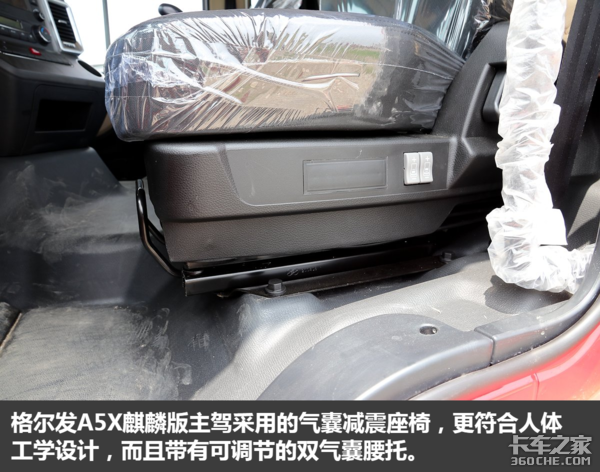 常年在颠簸路面驾驶,很多卡友都有职业病“腰疼”。这款格尔发A5X麒麟版主驾驶采用的气囊减震座椅,而且更符合人体工学设计,可调节的双气囊腰托可以让乘坐更加舒适,而且还可选通风、加热座功能。