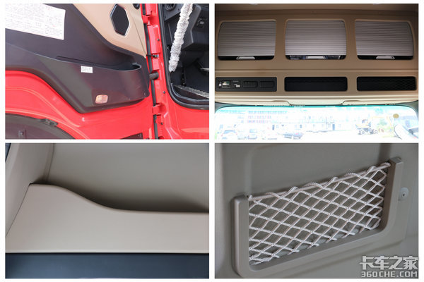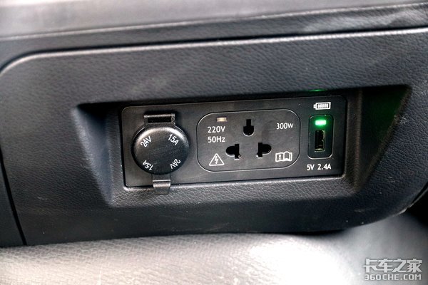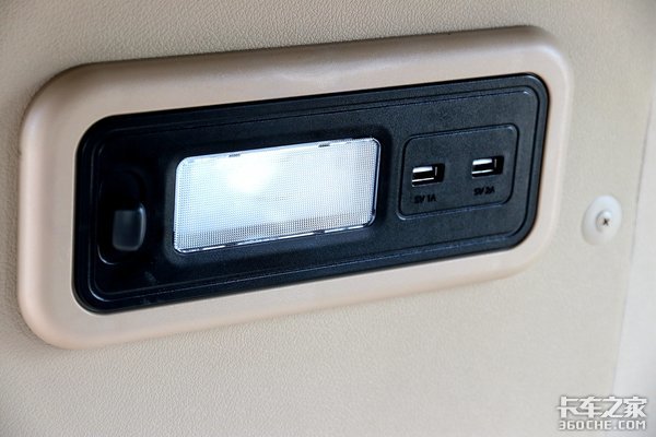 整个驾驶室内的USB充电口也非常多,副驾位置设计了点烟器和USB直充口,上下卧铺都设计有USB充电口,这样晚上躺在卧铺休息时,睡前可以直接给手机充上电,不耽误第二天的使用,再也不需要睡前爬出温暖的被窝去主驾位置给手机充电了,这些细节设计非常贴心。