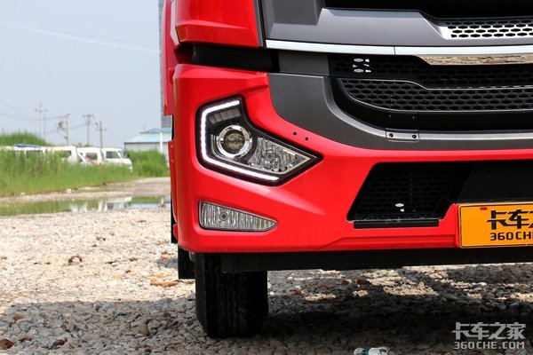 “逗号”形状的大灯和雾灯一起布置在保险杠上,远近光灯都采用卤素灯源,但是近光灯带透镜,在夜晚行驶时,铺路效果会更好,增加聚光性。而且灯组内部采用的是如今商用车行业中流行的熏黑式设计,“C”字形的LED日行灯也可以增加白天行车的安全性。