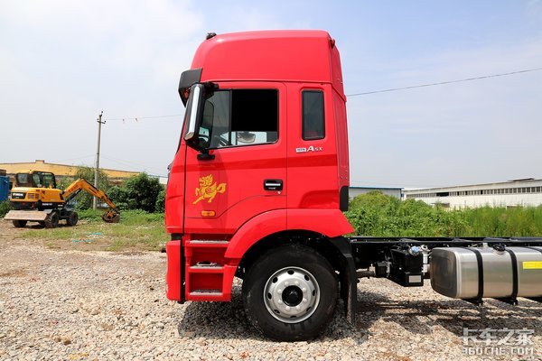 车辆侧身上的线条同样采用流线型设计,符合空气动力学,可以在行驶中降低风阻。另外从这个角度也可以看出来驾驶室后围向外延伸了一部分,可以给驾驶室卧铺营造更充裕的空间。