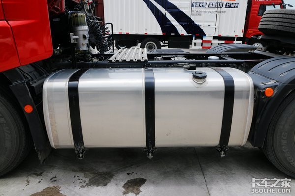实拍该车采用单油箱设计,容积为800升。有需求可选双油箱版本,总容积能达到1150升。